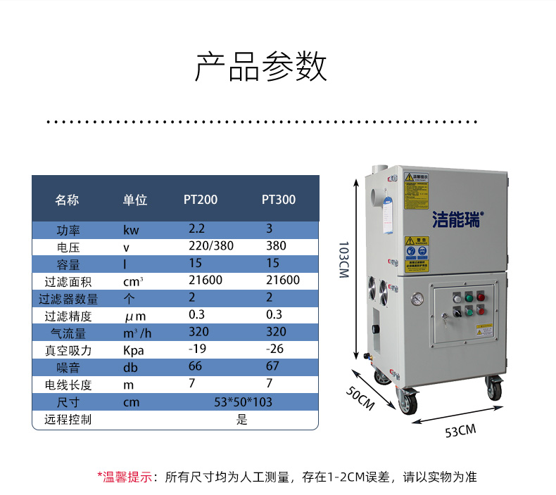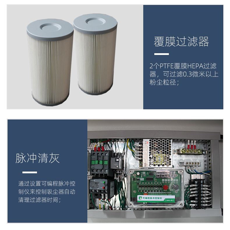5. 标配 2 个 PTFE 覆膜高效过滤器,过滤面积达 2.16m²,过滤精度 0.3μm。