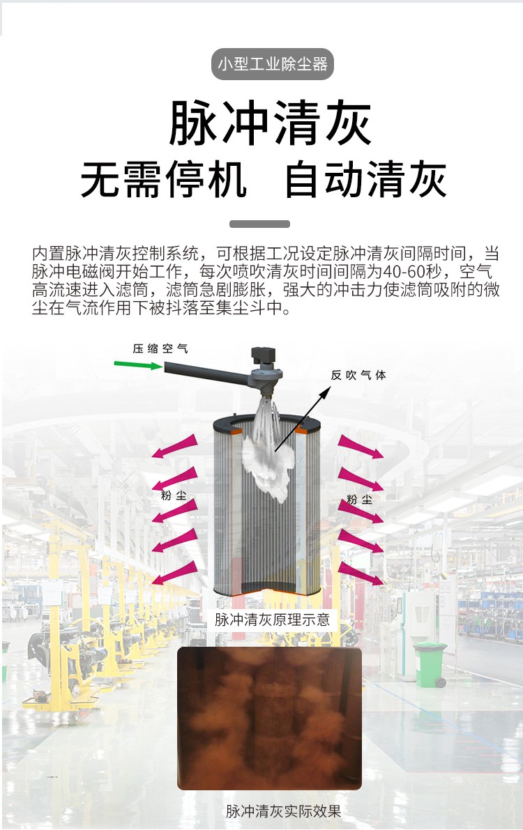 5. 内置脉冲清灰系统,可根据工况设定脉冲清灰间隔时间。