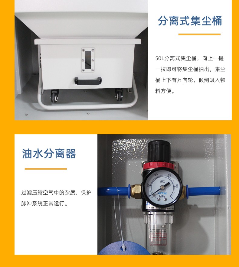 油水分离器,能过滤压缩空气中的杂质,保护脉冲系统正常运行。